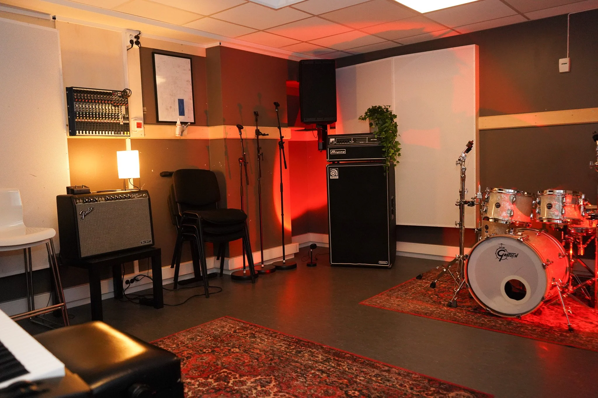 Rommene er fullt utstyrt med PA og backline, så her er det bare å ta med instrumentene og plugge i. Ønsker du å supplere med eget utstyr, kan dette lagres på et eget lagerrom som deles med alle som bruker deltid- og flexiordningen. Størrelsen på rommene er mellom 18 og 24 m2. Cymbaler og mikrofoner følger ikke rommene, men kan leies av oss i tillegg.